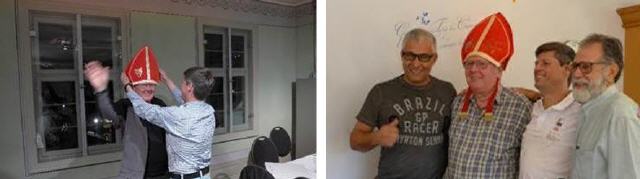Nach Vergabe von kleinen Geschenken an die Teilnehmer mit den längsten Anreisen wurde Jürgen Lafery mit einer roten Mitra geehrt. Auf der Papstmütze war auf der einen Seite das Puma-Logo und auf der anderen Seite zu lesen: Papst Puma I